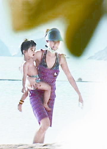 6月1日,她與兒子在香港海灘暢泳。結束時發現記者在場,她一臉愕然,頻頻低頭躲避鏡頭。記者表明身份,問到陳冠希回港是否影響其心情?柏芝似是有備而來,說:“過去了的事不要再提。”擺擺手便疾步上車離開。事后香港記者再致電柏芝問及Edison在CNN訪問中道歉一事,她只說:“不回應。”