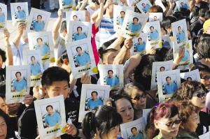 喜歡羅京的觀眾在網上自稱“菠蘿團”,“菠蘿團”用200朵白玫瑰制成的花牌和紀念冊表達自己的哀思,“主要是由羅老師的照片和菠蘿們的祝福組合而成。這個紀念冊的制作費是300多元,但制作方看我們是送給羅老師的,最后決定免費為我們制作。我們還做了一個心形花牌,由200朵白玫瑰和羅老師的照片組成。白玫瑰的花語是尊敬”,紀念冊已經送到羅京家屬手中。昨天現場“菠蘿”們統一手系黃絲帶,從凌晨5點就有人開車從天津趕到八寶山,“菠蘿”里有老人、孕婦,也有剛高考完的學生。這些天來,喜愛羅京的眾多粉絲自發在網上悼念羅京。網上獻花、上香、寫悼文者眾多。羅京生前曾在一次晚會上唱過周杰倫的《千里之外》,有“菠蘿”模仿《千里之外》為羅京寫了一首《京哥走好》——“電腦剛打開,噩耗就傳來,實在太意外;偌大中央臺,數你最有才,偏偏患上癌;工作到現在,將近三十載,新聞你主宰……”記者 張艷