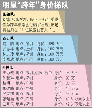 由于圣誕和元旦雙節即將到來,港臺和內地明星馬上又要迎來一年一度的搶錢“尖峰時刻”。往年,臺灣地區的明星基本以島內“串場”為主, 元旦除夕晚從臺北一路南下,一個晚上坐飛機或直升機趕場賺錢。但今年起,大陸各大衛視的跨年演唱會“搶星大戰”升級,為港臺明星大開“錢”途。僅北京、上海、廣州、深圳等幾大城市舉辦的跨年秀已讓港臺明星跑到腳軟,且這些電視臺開出的價格大大高出臺灣或者香港同樣活動的報價,因此內地地區的跨年活動明顯更有吸引力。