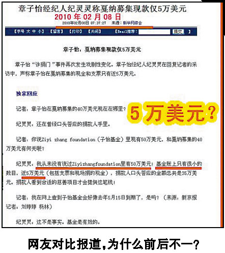 籌款之時(shí)見諸報(bào)端的善款數(shù)字,與網(wǎng)友各處追查而得的結(jié)果相差甚遠(yuǎn),有人認(rèn)定章子怡中飽私囊,打著慈善的名號(hào)謀利。章子怡究竟募集了多少善款?700萬美元?200萬美元?100萬美元?50萬美元?章子怡說,在戛納募捐現(xiàn)場籌集到的現(xiàn)金實(shí)際只有1392.36美元。