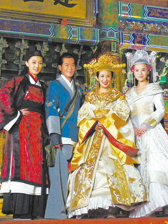 昨天,由王晶導演,匯集了古天樂、大S、吳君如、羅家英、林子聰、李健仁等笑星的古裝喜劇《大內密探零零狗》對媒體開放橫店片場。頭戴黃金冠,身披黃金衣,首度以戲裝現身的吳君如的造型像極了《滿城盡帶黃金甲》里的鞏俐,山寨味十足。