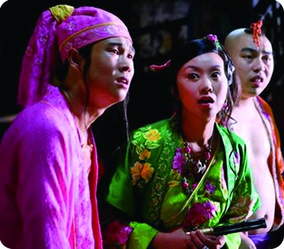 “我是令狐沖的弟弟,江湖人稱,大蔥大俠!”只見小沈陽穿著大紅肚兜,拿著一根超長的大蔥,很興奮地比劃。大家都知道,小沈陽又開始做“武俠夢”了。也不知是有意無意,小沈陽在片場沒事就在張藝謀面前耍功夫——拳擊、猴拳、彎刀、掌功、甚至太極拳,每樣都見縫插針地給張導(dǎo)秀一把。原來小沈陽是有計謀的——他想讓張藝謀把他培養(yǎng)成打星!“張導(dǎo),我現(xiàn)在是打星了嗎?”“打星!打星!”張藝謀附和道。小沈陽一下興奮了:“我現(xiàn)在是武林中人了,啊嚎?武林中人了!”張藝謀也來勁了:“你能演《上海灘》,《黃飛鴻》也行!”小沈陽這下才透露出了自己的“真實意圖”,他半真半假地跟張藝謀說:“就得等你發(fā)掘我了!別人不行了。”“好!”張藝謀也半真半假地一口答應(yīng)了下來。