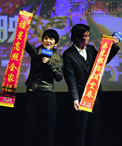 昨日的觀眾見面會,長沙影迷的專業程度讓吳君如、黃百鳴、黃子恒一行大感意外。由于現場主持人經驗欠缺,吳君如索性友情客串,不僅對現場觀眾大丟“包袱”,還不時拿黃百鳴和黃子恒開涮。在派送“紅包”時,吳君如號稱要出個難題考考觀眾,可能是對自己在長沙的人氣沒信心,吳君如問道:“《花田囍事2010》的上映日期是哪天?”不料全場觀眾整齊回答正確答案后還“鄙視”問題太簡單要求換一個,意外的吳君如瞪大眼睛半天不敢相信,事后更連連感嘆:“難怪人家說長沙是星城,肯定是見明星見多了,影迷都專業了。沒想到,不論是有關我以前電影的問題,還是黃百鳴以前老電影的問題,他們都能回答得出,有幾個看我想不出題目還幫我出題目,真是厲害!”記者龍玲 實習生肖帥