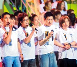 郭富城昨演唱〈愛的呼喚〉溫暖災民,他專程從北京趕返香港,表示曾經在臺灣生活過一段日子,“臺灣是我半個家,當得知臺灣發生水災,我感受很深,每次聽到臺灣有人受傷便心酸,所以我一定要返港出一分力,大會叫我做什么便什么。除了捐錢,我覺得要安撫災民,我的歌迷會已計畫幫手籌款。”