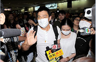 劉德華昨日下午約4點從杭州飛抵北京,大批媒體追到機場。穿著便服的華仔神情略顯疲憊,對傳媒追問他和朱麗倩在美國秘密結婚等問題,充耳不聞,接受粉絲的獻花后,匆匆上車離去,不發一語。