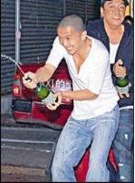之后,工作人員便拿出香檳,霆鋒及一幫演員早有默契的互望,接著便用香檳互噴,隨后,謝霆鋒更興奮得走出馬路,嚇得在場(chǎng)的工作人員大叫他“小心!”。互噴香檳后,謝霆鋒等人才乖乖走回鋪內(nèi),與工作人員互相碰杯、齊飲香檳,場(chǎng)面十分熱鬧。