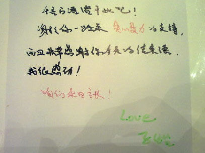 博文中,姚晨還貼上了一張小卡片,這張卡片是章子怡在《非常完美》電影首映結(jié)束后,用三種顏色給她寫的一張卡片。卡片一出就立即遭到了網(wǎng)友們的瘋狂拍磚,因?yàn)檎伦逾淖帧皩?shí)在讓人不敢恭維”。(新快報(bào))