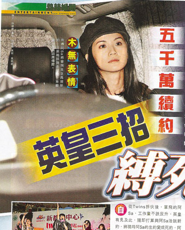 在Twins拆伙期間,單飛的阿Sa工作量不跌反升。當時不僅有其他唱片公司打算高薪挖角,而且她與鄭中基仍是夫妻關(guān)系,有傳鄭中基有意撬她到金牌組成夫妻檔賺錢,在種種“誘惑”之下,英皇與阿Sa的新合約問題一直處于拉鋸階段,久久未能成事。 現(xiàn)在“Sa基”婚變,英皇趁機再談續(xù)約。為了讓阿Sa下定決心,英皇準備以5000萬港元的天價利誘阿Sa,并承諾將力捧她,在Twins的復(fù)合演唱會后讓阿Sa再次單飛工作。有知情人士說:“阿Sa本來就和公司關(guān)系非常好,現(xiàn)在和鄭中基劃清界線后,更加要搏命賺錢。公司給出那么優(yōu)厚的條件,阿Sa很難不心動!
