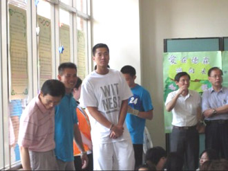 昨天上午何守正和籃球隊隊友參加德霖技術學院發愿樹活動,第一個節目是學生表演原住民舞蹈,伴奏舞曲正是張惠妹唱的張惠妹《站在高崗上》。當阿妹的歌聲響起時,許多師生不約而同把目光掃向何守正,還有學生聽到阿妹的歌,驚呼:“這么巧,不會吧?”