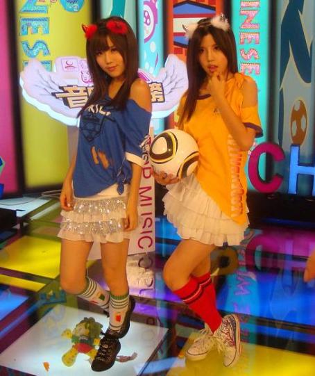 姐姐miko選擇了一件黃色的球衣,妹妹yumi選擇的是一件藍色球衣。經(jīng)過兩人的設(shè)計和剪裁后的新版球衣穿在身上,配上白色蛋糕短裙,再戴上可愛的頭飾。普通的球衣立刻秀不一樣的效果,艷光四射謀殺無數(shù)菲林。兩姐妹也似乎很滿意自己的設(shè)計,不斷地擺出各種或可愛,或嬌憨,甜美又透著些許性感的POSE來配合展示自己設(shè)計的球服。