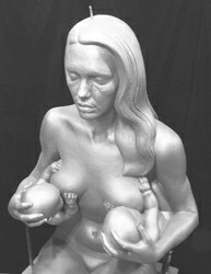 這座雕塑是朱莉在給一對雙胞胎喂奶的裸體坐像,作者為紐約藝術家丹尼爾·愛德華茲。雕塑將于9月11日在俄克拉何馬州諾曼市MAINSITE當代藝術館亮相。