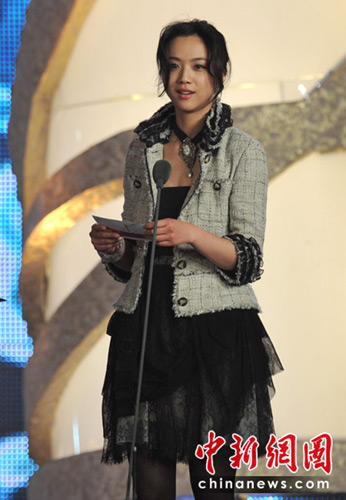 昨晚,湯唯不但是重要獎項“優(yōu)秀男演員”的頒獎嘉賓,而且還與導演高希希、主持人黃渤、演員郭家銘一起朗誦了《追夢獨白·新人輩出》。為什么選她?因為2006年的第6屆“百合獎”,她就憑借《燕子警察》中的女警察一角,成功“封后”摘得優(yōu)秀女演員獎。