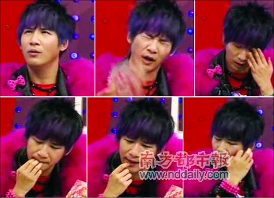 在后面的節目中,對于男女主持的提問,大張偉咬手指、挖眼屎,拿紙巾擦汗,最后索性脫掉了外套喃喃自語,“我今天怎么了!”完全不在狀態(見上圖)。大鵬終究也被逼“毛”了,突然起身丟下提問稿憤怒離場,直播節目被迫中斷。這段視頻曝光后,不少網友認為大張偉的狀況是犯了毒隱,“這家伙肯定是溜冰(指吸食某種毒品)了”。(記者 黃銳海 實習生 劉文斯)