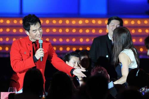 中新網(wǎng)2月22日電 任賢齊年初七在澳門舉行“任賢齊星級(jí)晚宴演唱會(huì)”,邀請(qǐng)了陳冠希愛將農(nóng)夫擔(dān)任表演嘉賓,關(guān)心妍與老公楊長智前來捧場(chǎng)。小齊在臺(tái)上不忘向觀眾拜年及大派禮物,其后走到臺(tái)下四處獻(xiàn)吻及任攬任抱,事后任賢齊笑言感覺很幸福。