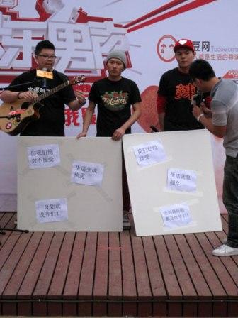 今年快男注定與眾不同,不僅“偽娘”選手備受關(guān)注,而且連“反偽娘”選手也不失風(fēng)采,上周快男土豆網(wǎng)分賽區(qū)一組特殊選手C-BLOCK組合因在比賽現(xiàn)場打出 “保護(hù)純爺們 消滅偽娘族”的參賽口號,而備受網(wǎng)友關(guān)注并被封為“反偽娘斗士”,而有關(guān)這場“偽娘”與“反偽娘”的對決,昨日舞美師在博客爆出猛料:“著姐入圍前三甲不是問題,首先是因?yàn)槲矍虻男枰@也是湖南衛(wèi)視選秀常用手段;不僅如此,劉著也已經(jīng)秘密簽約湖南衛(wèi)視旗下長沙天娛公司”。而針對舞美師的爆料內(nèi)容,記者也從網(wǎng)上了解到該組合相關(guān)資料,首先該C-BLOCK組合來自長沙,在當(dāng)?shù)匾恢毙∮忻麣猓瑢?shí)力不俗,去年多次參加湖南衛(wèi)視王牌節(jié)目《快樂大本營》、《成年禮》、《8090》等節(jié)目,而關(guān)于“偽娘”劉著網(wǎng)上開始有人爆出其與湖南衛(wèi)視關(guān)系甚密,這些相關(guān)信息與舞美師爆料內(nèi)容十分契合。為進(jìn)一步求證舞美師的爆料內(nèi)容,記者向湖南衛(wèi)視快男導(dǎo)演組一編導(dǎo)求證,他表示:“不要相信舞美師博客內(nèi)容,純屬造謠,快男比賽保證公平選拔”。 張 漪