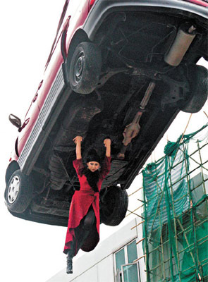 中新網2月2日電 蔡少芬昨日再化身女飛人,拍攝新劇《飛女正傳》。拍攝期間,蔡少芬被吊高到半空拍攝,事后忍不住笑說:“我真是吊到想自殺,拍完后都能做超人了。”