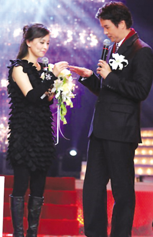 明星情侶林瑞陽、張庭5日雙雙現(xiàn)身上海“2009十大快樂明星家庭晚會(huì)”錄制現(xiàn)場(chǎng),林瑞陽當(dāng)眾再次向張庭求婚,十分浪漫。