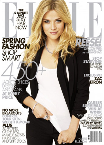 奧斯卡影后瑞茜·威瑟斯彭化身干練女主管裝扮登上了《ELLe》封面4月號封面,這次雜志主要對瑞茜·威瑟斯彭的離婚生活和現在的近況進行了深入的采訪,我們期待這位粉紅俏佳人的成熟吧。