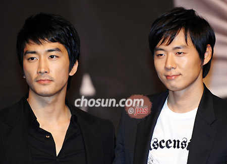 中新網3月10日電 據朝鮮日報報道,宋承憲主演的MBC人氣電視劇《伊甸園之東》的慶功宴 9日下午在首爾中區小公洞樂天酒店舉行。圖為,出席當天的活動的宋承憲和延政勛正在傾聽記者提問。
