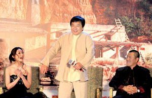 一開場,導演丁晟就為全場定下了基調:“為了能跟大哥合作,我看了大哥的每一部電影,大哥……”一連串的“大哥”,叫得坐在一旁的成龍樂不可支。隨后,“小將”王力宏、劉承俊、女主角林鵬等輪流發言。