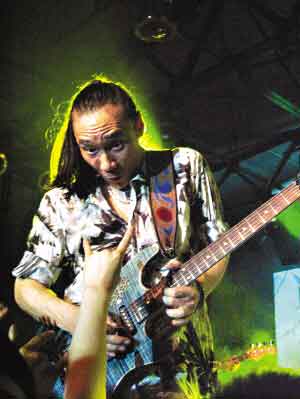 唐朝樂隊依然是王者風范,主唱丁武那遼遠、高亢的嗓音,再一次震動我們的心靈深處;主音吉他老五兇猛的演奏風格不時撥動歌迷記憶中的歲月,臺上的他們雖已不如十幾年前那般青春,可“殺傷力”仍不減當年。