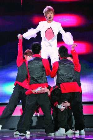 前晚大牌很多話題明星不少,因“牽手門”備受關注的庾澄慶擔任表演嘉賓。但最終“脫穎而出”的還是李宇春(春春)。摘得“最佳舞臺演繹獎”后,上臺表演《WHY ME》時,完成開始的空翻動作后春春邊唱邊跳,但上衣中間的紐扣突然裂開,由于表演的是快歌,紐扣爆裂位置越擴越大,到結束時打底衫幾乎暴露出來。幾秒鐘后醒悟的春春,不時用手捂著胸口。事后談到“爆衫”一事,春春稱是對自己舞臺經驗的考驗,“工作人員嚇死了,他們在臺下也不清楚,因為打底衫是肉色的,所以很擔心。但沒有時間扣起來,并且動作幅度減小也不好看!