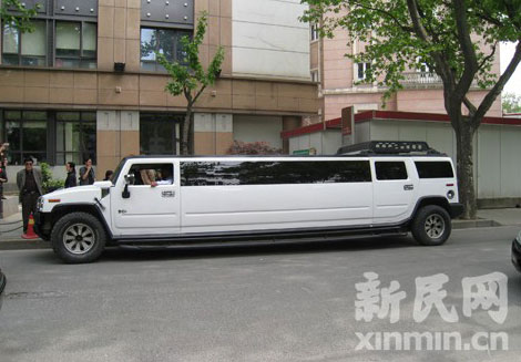 簽約儀式設(shè)在汾陽路上,新民網(wǎng)記者抵達(dá)現(xiàn)場(chǎng)時(shí),看到一輛加長(zhǎng)版“悍馬”停在簽約現(xiàn)場(chǎng)的對(duì)面。由于汾陽路狹小,只有兩個(gè)車道,加長(zhǎng)版“悍馬”又開過了,致使轉(zhuǎn)彎轉(zhuǎn)不過去。“悍馬”停在路邊,需要等身后的車輛都開走才能往回倒,再轉(zhuǎn)進(jìn)簽約現(xiàn)場(chǎng)。這樣一來,造成了汾陽路上的交通堵塞。