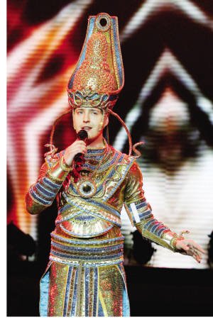 昨晚,第三度來(lái)滬會(huì)見(jiàn)老朋友的維塔斯,顯然想用更多新招數(shù)來(lái)回饋觀(guān)眾。他想證明自己的“跨度”不僅體現(xiàn)在海豚音的聲調(diào)上,還能駕馭多種風(fēng)格的歌曲和舞臺(tái)表演。不過(guò),無(wú)論是俄文版的中國(guó)歌曲《大海啊,母親》,還是用中文唱《青藏高原》,上海大舞臺(tái)的觀(guān)眾最熱烈的掌聲還是給了維塔斯的“招牌菜”——《星星》和《歌劇2》。
