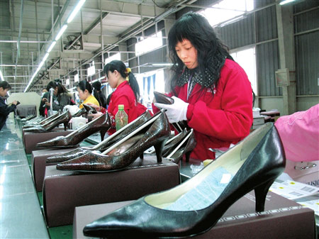 昨天下午,記者來到位于武侯區簇橋簇馬工業園成都依百蘭鞋業。工廠內四條生產線正加足馬力生產Bandolino的訂單,其中一條流水線上生產的,正是奧巴馬夫人穿的那款鞋。