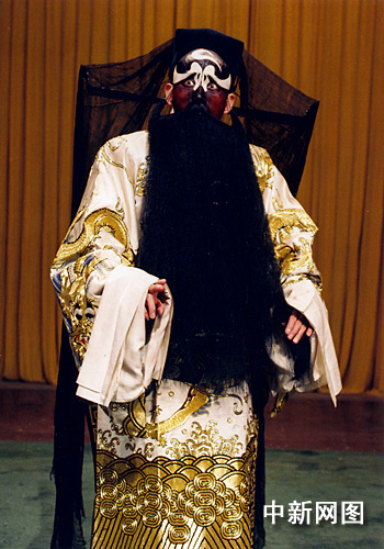 《鍘判官》是一出唱功十分繁重的裘派經(jīng)典,要求具備相當(dāng)?shù)谋硌萏貏e是演唱實(shí)力,裘派傳人中少有人輕易問鼎。在5月8日的《鍘判官》中,孟廣祿根據(jù)自己的表演特長(zhǎng)和當(dāng)今觀眾審美口味的變化,對(duì)老版本進(jìn)行了梳理整合,做出了大膽而又審慎的新突破。在《探陰山》一折唱段的高潮之后再起異峰,加了一大段包拯與柳金蟬的“反二黃”對(duì)唱,聲腔激越凄厲,感人肺腑。包拯義憤填膺正氣堂堂地去找閻王、判官“算總賬”,又設(shè)計(jì)了一段鏗鏘酣暢的“西皮剁板”。相信當(dāng)晚在梅蘭芳大劇院上演的整本《鍘判官》,將讓“裘迷”們聽得酣暢淋漓。