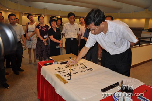 廣東華僑博物館館長王明惠向劉昆匯報(bào)了廣東華僑博物館籌建籌展情況,介紹廣東華僑歷史陳列主題展、廣東華僑民居展和館藏文物展的主要內(nèi)容。劉昆充分肯定廣東華僑博物館籌建籌展水平,表揚(yáng)省僑辦領(lǐng)導(dǎo)重視辦好廣東華僑博物館,博物館工作人員全力以赴,精心做好籌展工作,并欣然為廣東華僑博物館題詞“弘揚(yáng)華僑精神,建設(shè)文化強(qiáng)省”。(葉欣)