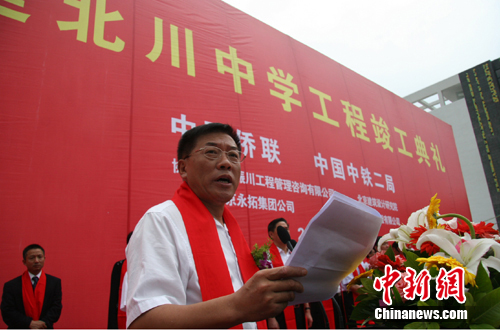 他希望即將在這里開始新的學習生活的北川中學師生們振奮精神、早日成才。