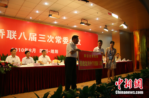 中新網(wǎng)綿陽8月17日電 (南若然)中國僑聯(lián)八屆三次常委會17日在四川綿陽召開,會上舉行了愛心企業(yè)和單位向援建北川中學(xué)工程捐贈儀式。