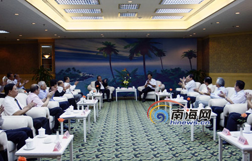 于迅介紹了當前海南經濟社會發展情況,重點介紹了建設國際旅游島的規劃和近期計劃。他表示,海南認真落實中央的一系列工作部署,著力轉變經濟發展方式,抓住這一重大歷史機遇,加快推進改革開放和各項建設,全省經濟取得了超出預期的發展成果,呈現出速度、質量和效益同步快速提升的良好態勢,改善民生也取得了明顯成效。