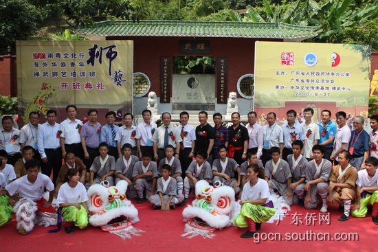中新網9月27日電 據廣東僑網消息,9月27日,由廣東省人民政府僑務辦公室、廣東省海外交流協會主辦的“2010南粵文化行海外華裔青年禪武獅藝培訓班”在位于廣東省華僑職業技術學校內的中華文化傳承基地•禪武中心開班。