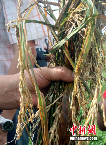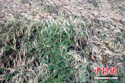 記者在當(dāng)?shù)厮姡笃墒焱淼疽廊慌菰谒小0纹鹨恢昕匆姽人胍呀?jīng)發(fā)芽。隨行的中國熱帶科學(xué)院專家分析說,這樣的稻谷人已無法食用,唯有趕緊翻地準(zhǔn)備下一季生產(chǎn)。