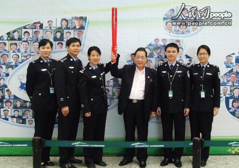 11月13日下午2時(shí)左右,一位準(zhǔn)備出境的旅客吸引了大家的眼球,更引人注目的是他手上的亞運(yùn)火炬。這位旅客便是廣州市區(qū)第十七棒亞運(yùn)火炬手,新加坡廣東會(huì)館館長(zhǎng)、廣東省僑聯(lián)顧問(wèn)、廣州市海外交流協(xié)會(huì)常務(wù)理事——何國(guó)才先生。