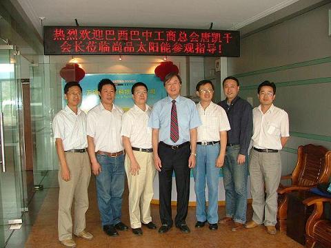 中新網(wǎng)9月16日電 9月9日,巴西巴中工商總會會長唐凱千先生來到無錫,在無錫市僑辦、惠山區(qū)僑辦工作人員的陪同下,考察了無錫尚品太陽能電力科技有限公司、江蘇玉龍鋼管股份有限公司,并與公司領(lǐng)導(dǎo)就貿(mào)易與合作等事宜進(jìn)行了洽談。