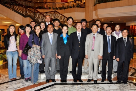 董中原說,今年是中韓兩國建交17周年,中韓自1992年建交以來,兩國關系迅速全面發展。雙方高層交往頻繁,政治互信不斷深化,經貿合作持續擴大,人文交流方興未艾,“韓流”、“漢風”交相輝映,兩國人民之間的相互理解和友誼不斷加深。中韓兩國地理相鄰、文化相近,民間交流在兩國關系中扮演著重要角色,雙方開展的豐富多彩的文化交流活動,拉近了兩國人民之間的感情和距離。頻繁活躍的人員往來,使得中韓民間交流與合作充滿活力,呈現出多渠道、全方位和形式多樣的特點。“中華情-韓中情·歡聚首爾”大型晚會的舉辦將為增進兩國人民傳統友誼、加強兩國文化交流產生積極和深遠的影響,衷心祝愿晚會圓滿成功。