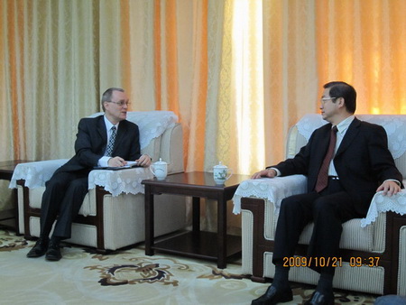 中新網10月22日電 10月21日上午,上海市僑辦主任崔明華在市僑辦貴賓室會見匈牙利駐滬總領館副總領事米哈依。