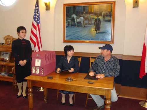 10月14日,蘇州園林設計院與美國德州葡萄藤市環境與文化認識協會(SECA),簽訂了在葡萄藤市“夢花園”中建設“中國花園”的合作協議書。當晚,葡萄藤市舉行隆重晚宴,歡迎蘇州考察團一行。葡萄藤市市長塔特在致詞中說,夢花園是讓世界分享東方文化,代表了東方文化的天人合一的和諧,世界不同文化在大自然里達到完美統一。蘇州海外交流協會會長顧伯銘在講話中說,蘇州深感榮幸參與夢花園工程,把中國園林介紹給世界,蘇州園林設計院將精心設計全力支持,讓中國園林再次在美國建造成功。
