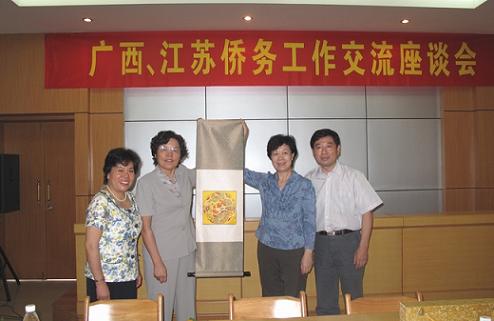 此次江蘇省僑辦紀檢組長侯永蘭率領的江蘇省僑政工作考察團一行16人于10月24日抵達廣西學習考察,廣西區僑辦熱情接待,并與江蘇省僑政工作考察團互相交換紀念品。