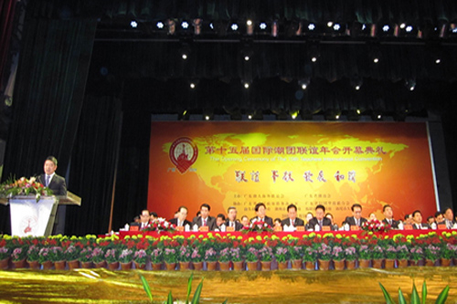 中新網11月20日電 據國僑辦網站消息,11月18日下午,由廣東潮人海外聯誼會及潮商會主辦,廣東省僑務辦公室、廣東省歸國華僑聯合會和汕頭、潮州、揭陽、汕尾四市人民政府協辦的“第十五屆國際潮團聯誼年會”在廣州中山紀念堂隆重開幕。中共中央政治局常委、全國政協主席賈慶林向大會發來賀信,中共中央政治局常委李長春、中共中央政治局委員、廣東省委書記汪洋、全國政協副主席鄭萬通出席了開幕式。國務院僑辦副主任任啟亮出席開幕式并致辭。