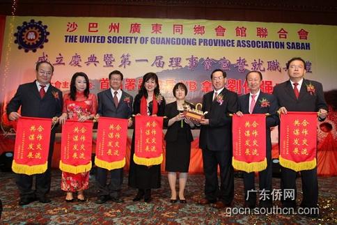 中新網11月27日電 據廣東僑網消息,11月26日晚,馬來西亞沙巴州廣東同鄉會館聯合會成立慶典暨第一屆理事會宣誓就職晚宴在沙巴亞庇絲綢港灣麥哲倫大酒店隆重舉行,來自中國、新加坡、汶萊、西馬、沙撈越等地的嘉賓共700多人出席了慶典儀式。廣東省僑辦副主任黎靜、深圳市僑辦主任鐘蔭騰等廣東省市僑務部門領導出席了慶典儀式。馬來西亞聯邦首相署副部長YB拿督劉偉強局紳擔任慶典儀式主禮嘉賓。