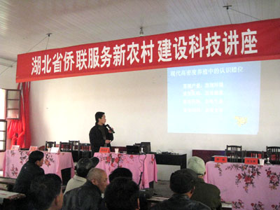 中新網12月4日電 據湖北僑聯網消息,近日,湖北省僑聯組織的服務新農村建設“科技講座”活動,分別在老河口和天門市舉辦。此次活動,邀請了華中農業大學植物科技學院和水產學院5名專家教授,分別就“梨的主要病蟲害及其防治”、“果樹優質栽培技術及實際操作”、“水產養殖和除病”等方面的知識進行了專題講座,來自老河口市和天門市各鄉鎮共160多名農業站長、技術員和養殖專業戶聽取了科技講座。此次活動,受到了當地農民的熱烈歡迎。