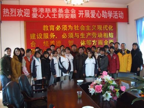 中新網12月31日電 據安順市僑聯消息,2009年12月23日,香港慈恩基金會在貴州省安順市第三中學、安順市驥志高級中學舉行助學款發放儀式,現場為受到資助的20名學生發放助學款每人500元人民幣。