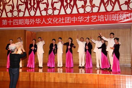據介紹,深圳華夏藝術中心自2002年12月3日承辦第一期“中華才藝培訓班”至今,已先后承辦了十期,60多個國家的600余學員在此接受過培訓。為使學員們能將專業知識較為完整的帶回去鞏固和傳播,華夏藝術中心此次還專門編寫了舞蹈、聲樂教材。“海外華人文化社團中華才藝培訓班”的舉辦不僅為海外華社培訓了一批高質量的才藝骨干,更豐富了當地華僑華人的文化生活,并成為中國開展海外文化交流活動的重要內容之一。在當天舉行的結業典禮上,學員們還展示了一系列他們所學的傳統中華民族舞蹈和聲樂表演,匯報18天來的學習成果。(張平和)
