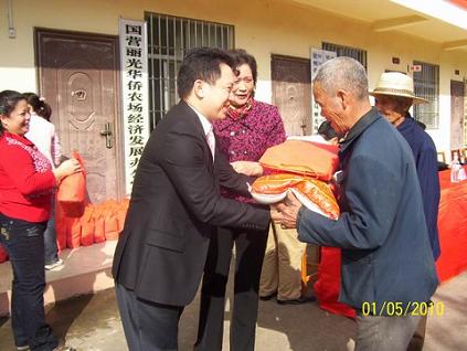 中新網1月11日電 據廣西僑聯網消息,1月5日,廣西欽州籍港商原天博士為欽州市困難僑胞、農村貧困人員捐助總價值25萬元的10.8萬斤大米、1.8萬斤糖果啟動儀式在欽州市欽南區麗光華僑農場隆重舉行。