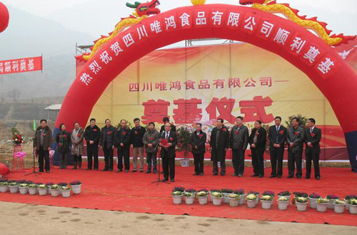 中新網1月26日電 據四川僑網消息,近日,由法國巴黎士多集團有限公司總裁、法國華裔互助會會長鄭輝先生投資的四川唯鴻食品有限公司食用菌基地奠基儀式在廣元市青川縣三鍋鄉舉行。四川省僑聯秘書長李楊陽、廣元市副秘書長顧立群、青川縣縣長陳正永和四川僑辦經濟科技處、廣元市外僑辦相關負責人出席了奠基儀式。