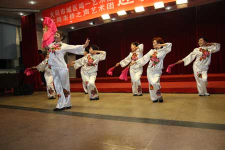 據藝術團團長周玉萍介紹,“僑之聲”藝術團成立四年來,始終堅持以僑為本、為僑服務的工作理念。在大同市僑聯的正確領導下,經常下基層以文藝的形式宣傳《僑法》、慰問僑胞,僅2009年參加的全國和省市舉辦的文藝活動達6場,并獲得有關部委的表彰。在新中國成立60周年之際掀起的大唱“紅歌”活動中,藝術團為基層演出并現場輔導更是高達20多場。領導的支持、政治上的鼓勵極大的帶動了歸僑僑眷的工作熱情。